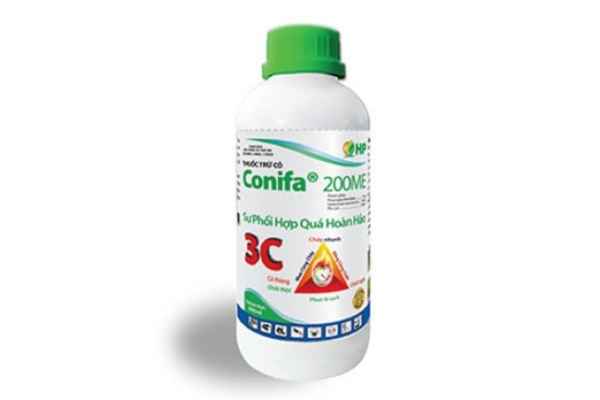 Công dụng : conifa 200ME 3C là sự phối hợp hoàn hảo của 2 hợp chất diệt cỏ tiên tiến nhất hiện nay ,2 hoạt chất giúp tăng khả năng diệt cỏ mà các loại thuốc trừ cỏ khác hiện nay không có được như đốt cháy nhanh hơn làm chết ngay các loại cỏ đặc biệt cỏ mần trầu ,cỏ tranh ,cỏ chỉ ,cỏ gấu (cỏ cú ) , cỏ thài lài ..vv..và hơn cả tháng cỏ mới thể bắt đầu nảy mầm trở lại .