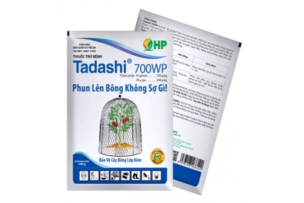 Tadashi 700WP là thuốc trừ nấm, có tác động tiếp xúc, phổ tác dụng rộng, hiệu quả phòng trừ cao đối với các bệnh sương mai, phấn trắng, thối quả, thán thư trên nhiều loại cây trồng như: lúa, rau, cây công nghiệp, cây ăn quả.