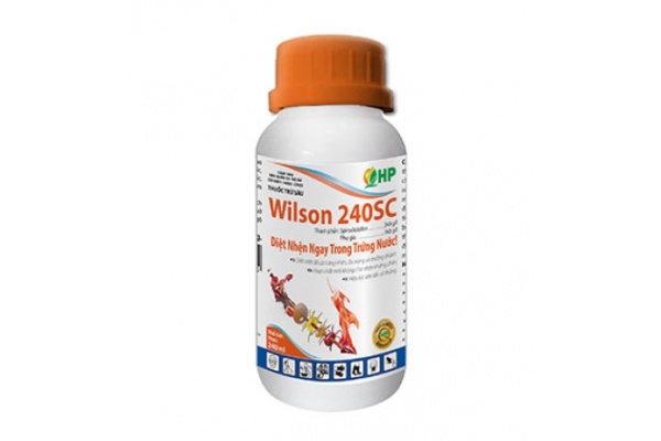 Công Dụng :Wilson 240sc là thuốc đặc trị nhện đã kháng thuốc hiện nay do hoạt chất mới cơ chế tự động mới .Thuốc sử dụng những phụ gia đặc biệt nên có tính thẩm thấu cực mạnh , thấm xuyên qua mặt lá để diệt ngay nhện đang bám mặt dưới của lá đồng thời khi trứng nhện tiếp xúc với thuốc ngay lập tức thuốc sẽ thẩm thấu bên trong làm ung trứng .